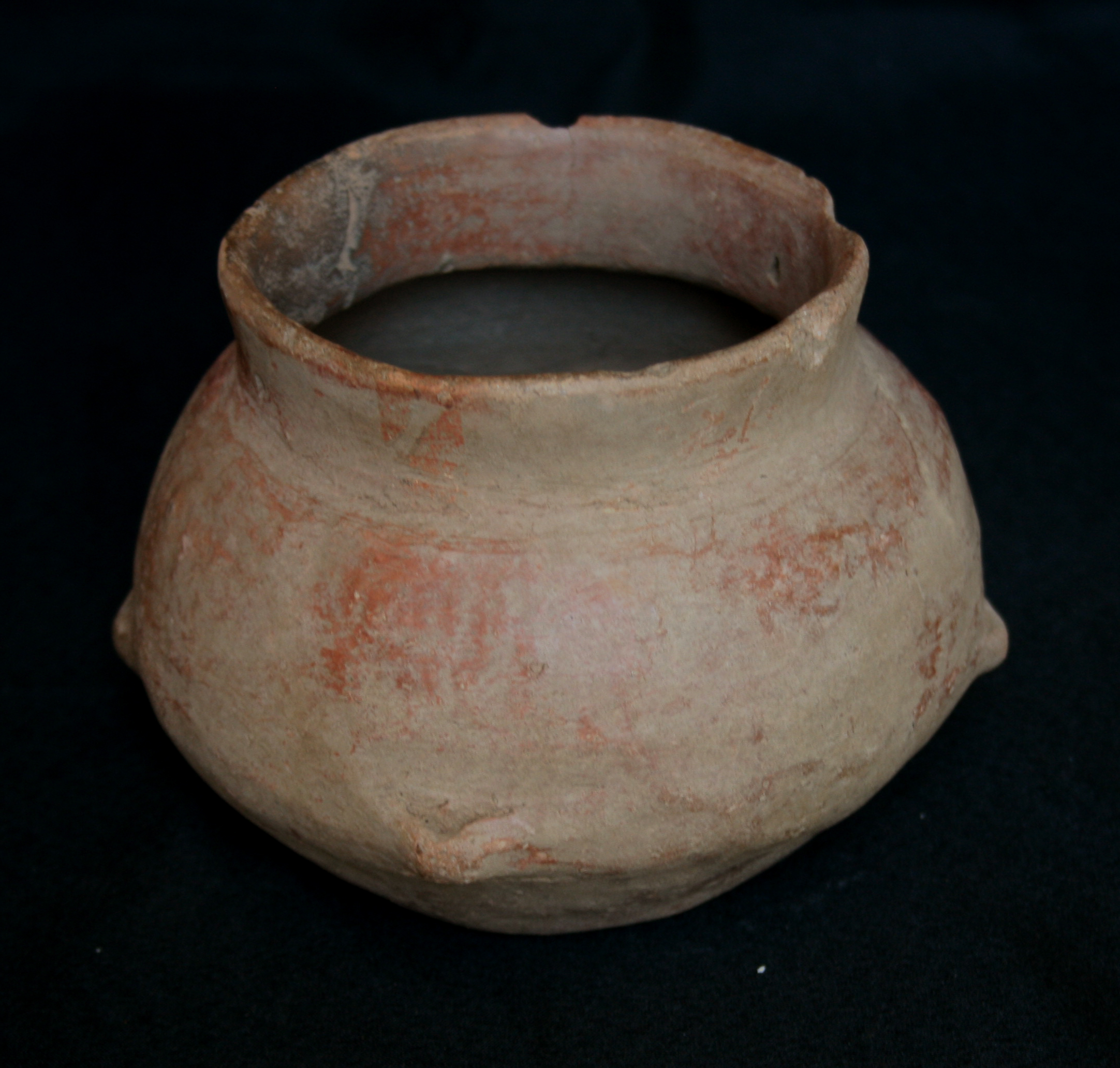 This small earthenware pot is from the Hongshan culture. This culture is found in north-west China, Inner Mongolia to Liaoning. It is dated between 4700 to 2900 BC. The culture was only found in early 20th century, and I find different stories on that. It is mostly know for the jade pieces, and the Niuheliang temple complex.