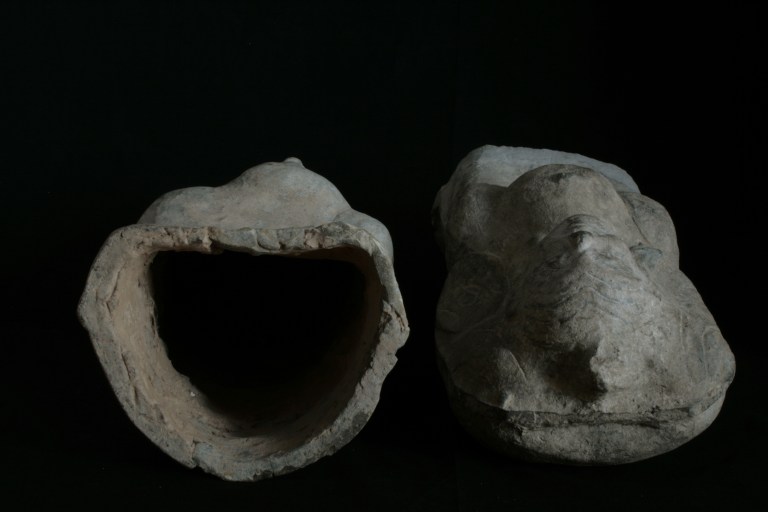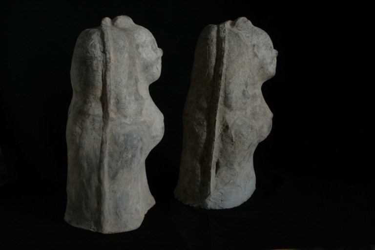 These are a Western Han Sichuan pair of entertainers/drummers. They are quite crude, but full of life. Quite large too, about 35 cm. One of them has some minor repairs, but a remarkeable pair. These Chinese shuochangyong (talking and singing figures) entertainers would have been part of an ensemble that included actors, musicians, and dancers. From literary records we know that they would typically sing to the accompaniment of their own drum, while providing clown-like entertainment. Several representational pottery figures have been recovered from Sichuan tombs, some standing, some half-kneeling, and some with the foot kicking out. They are perhaps the most engaging creations of the Eastern Han potters.