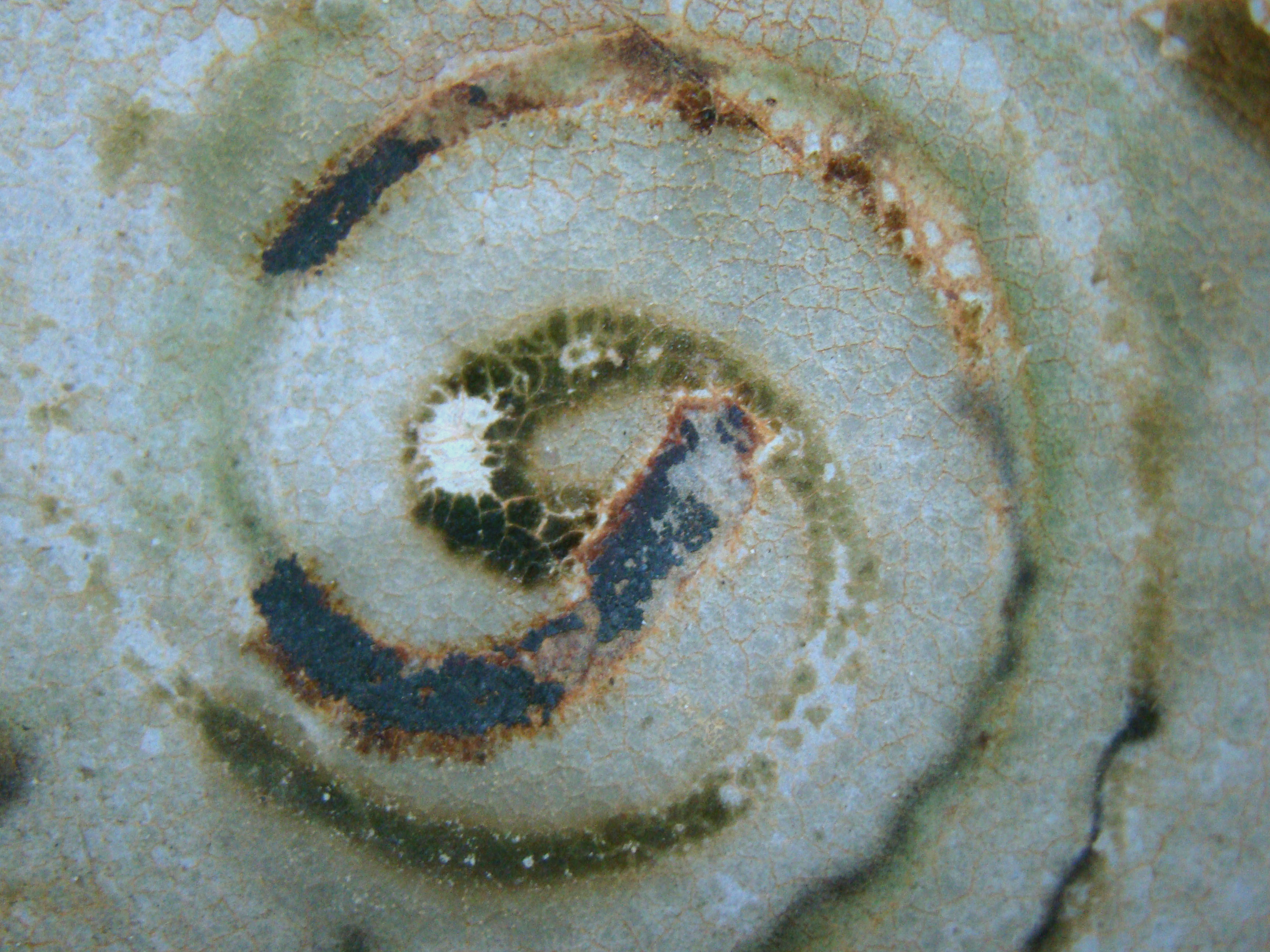 The bowl is made from a white clay and is glazed brown and green covered by a straw colour transparent glaze. It measures 15 cm across and stands 5,4 cm high. The glaze has degraded, and the bowl is covered in seagrowth, because of the long sea-burial.