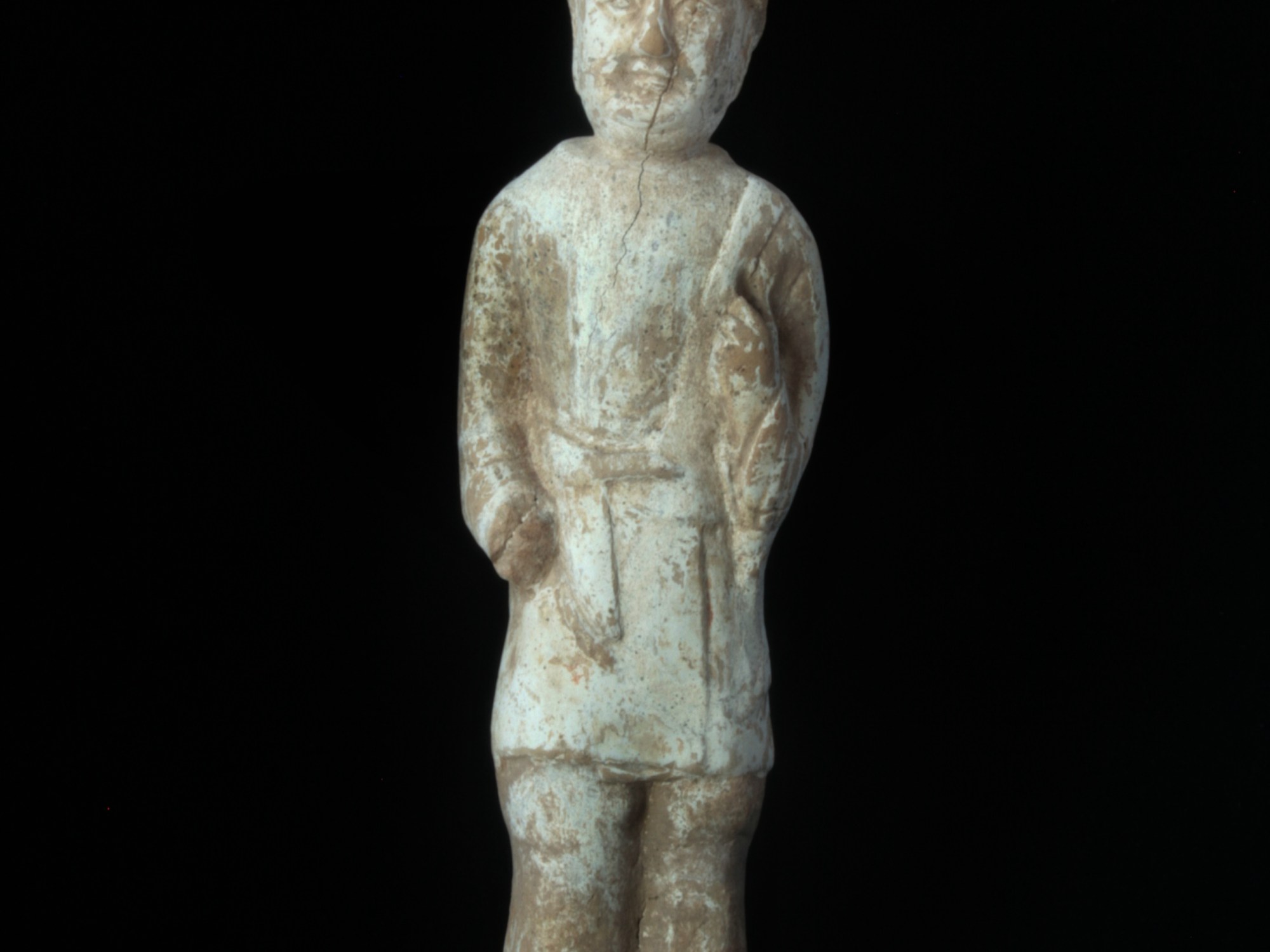 Interesting is that this figure possibly depicts a non-Chinese man. It is possibly a trader who came along the famous silk-route. He is wearing a bag, and has an intricate hair-do. It can also relate to the non-Chinese origins of the Norther-Wei