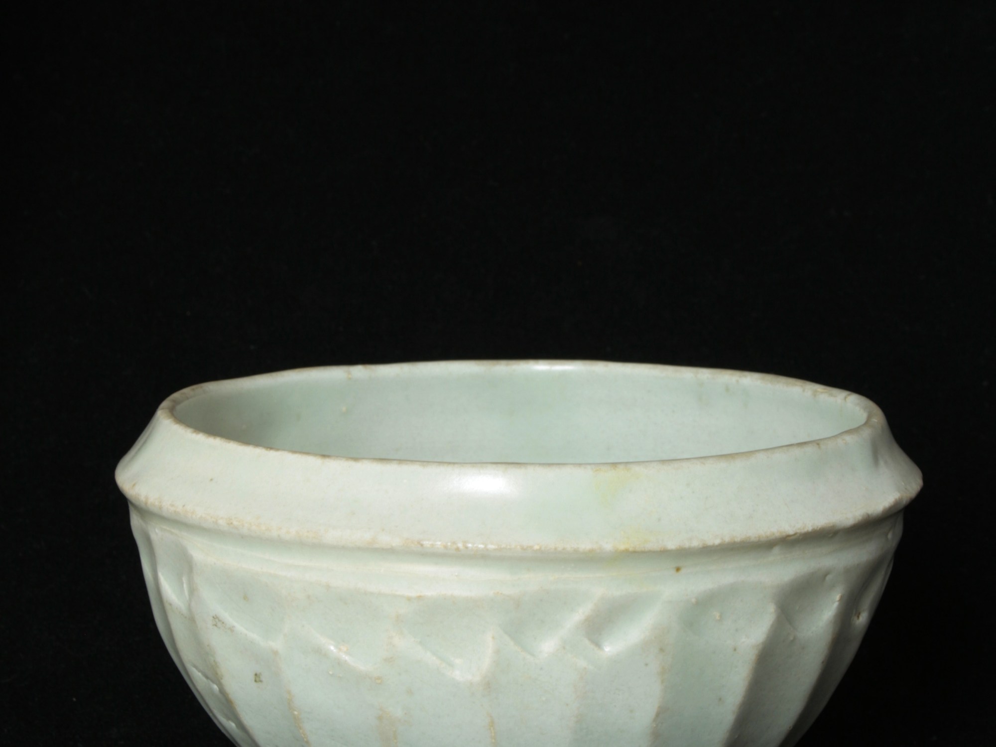 Bought this bowl at a local auction, where it was described as Ming. The lotus carving reminded me of a Song type of design, as seen on Ding ware. This glaze has a qingbai look though. The potting is kind of heavy, the clay slightly rough to the touch, and a greyish white. It measures 13 cm across, and 7 cm high.