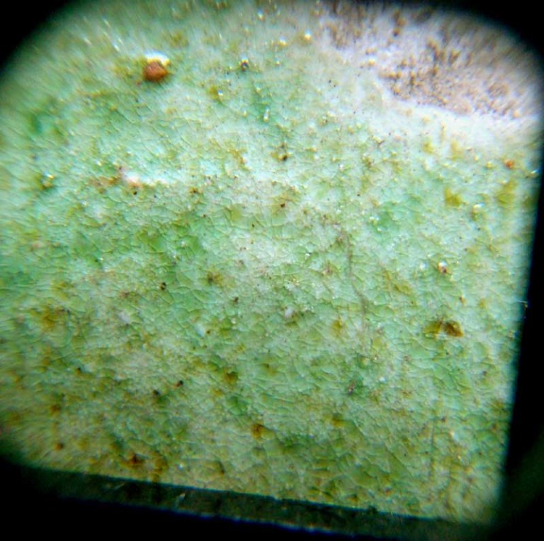 A magnified close up reveals the crazing of the glaze. I had the bowl handled by an experienced dealer, who declared it to be of the period, as did the seller (of course)