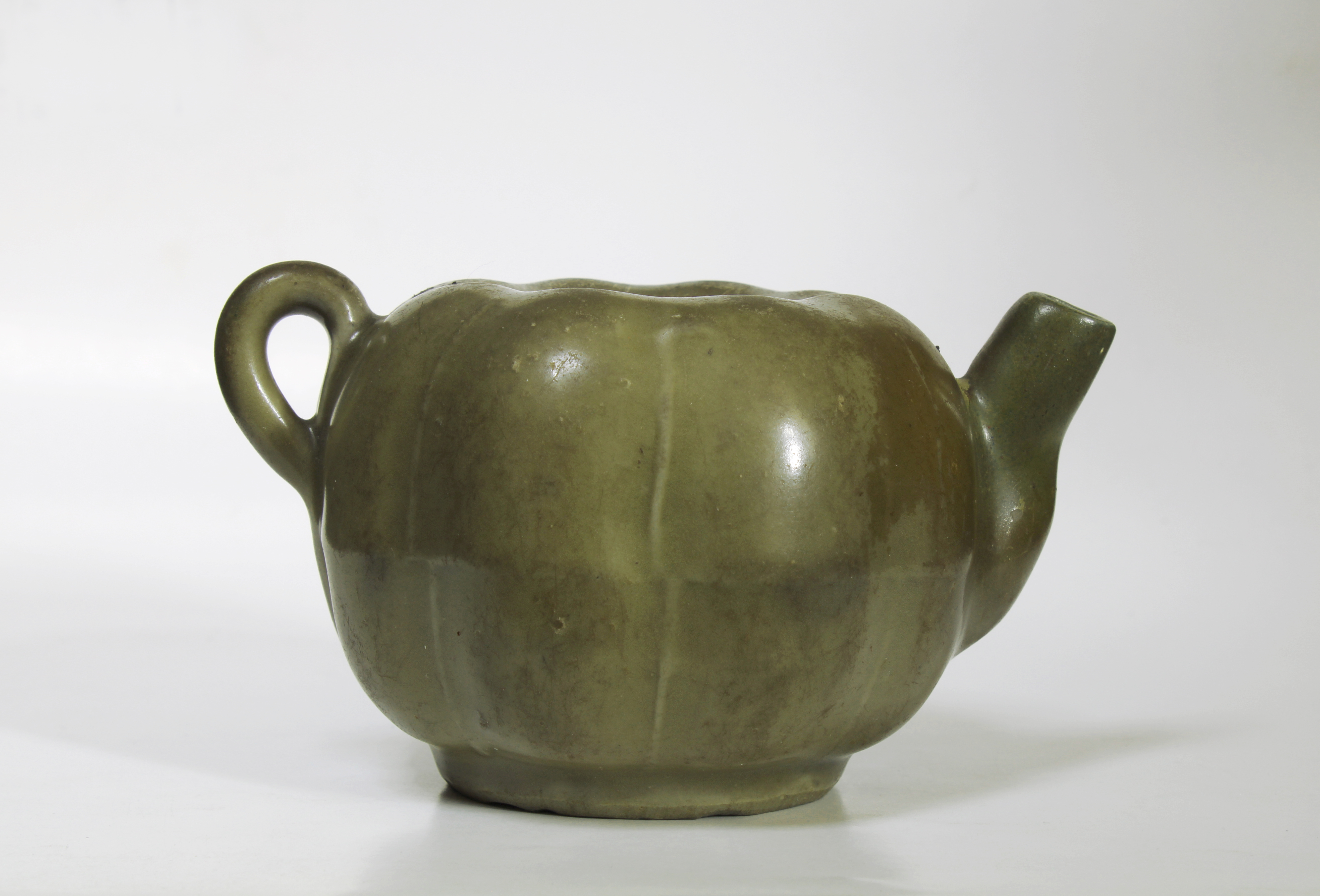 pumpkin, and made in a two part mould. Spout and handle added. The