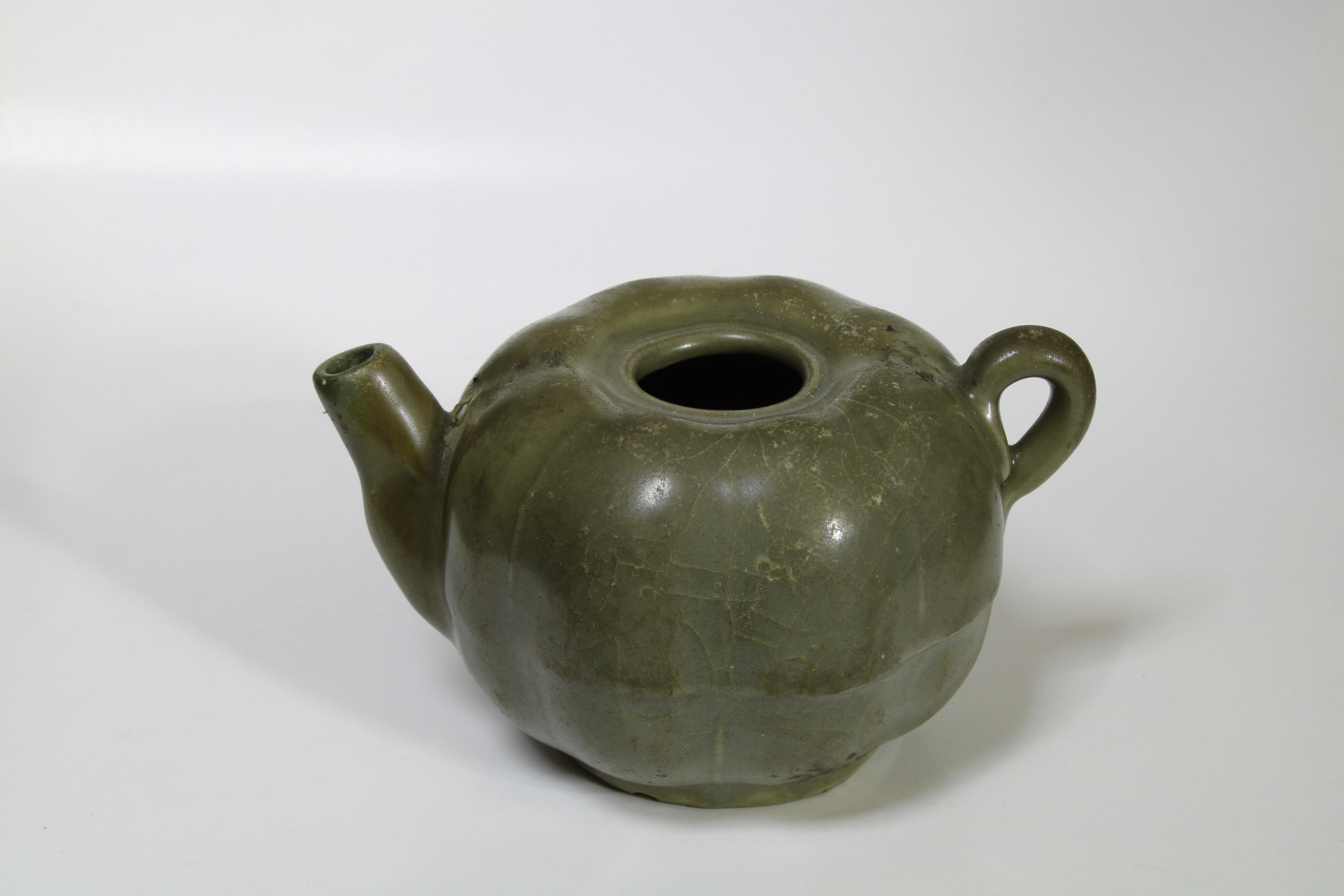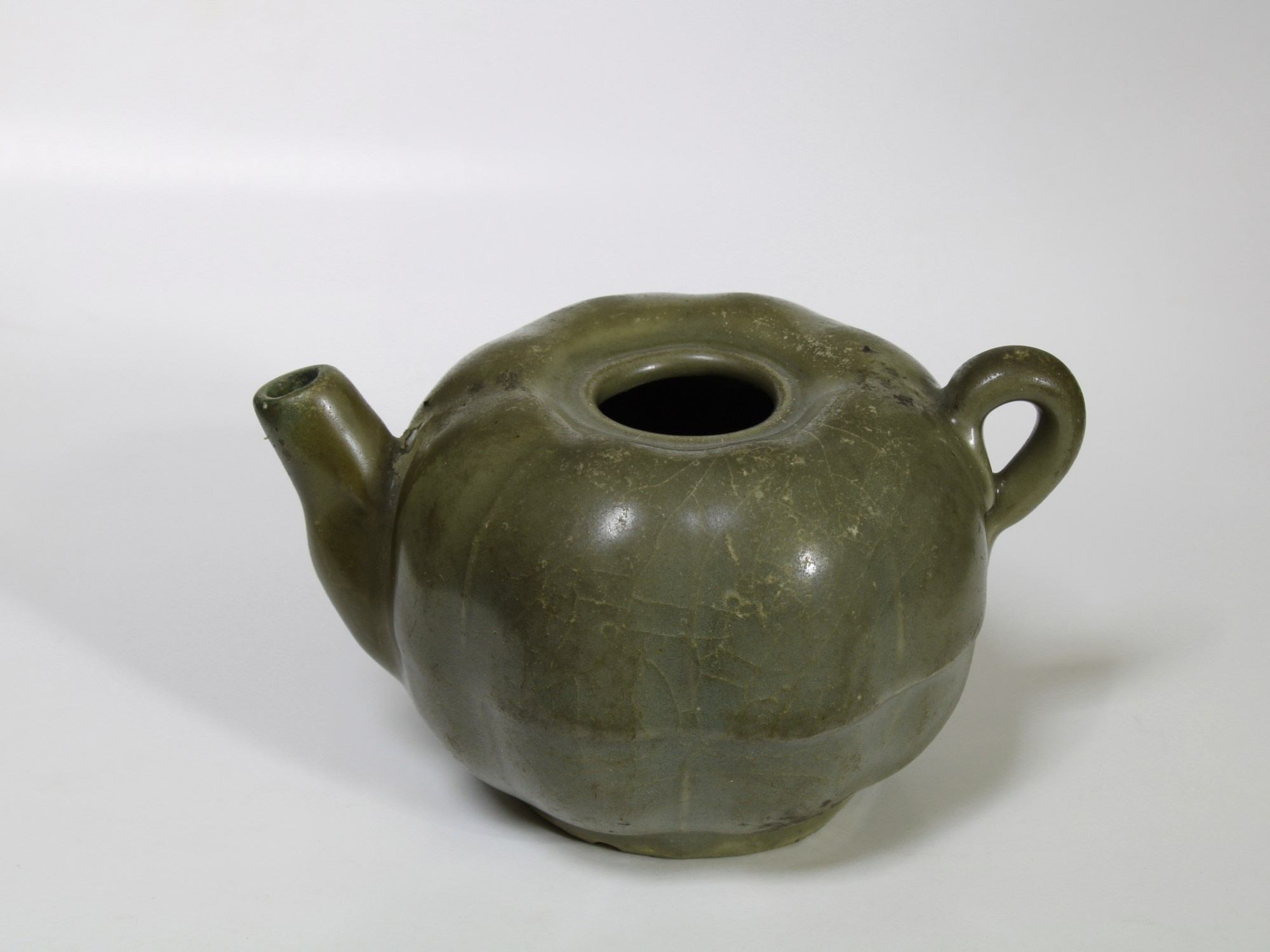 This small stoneware ewer is from the Longquan kilns in Zhejiang. It